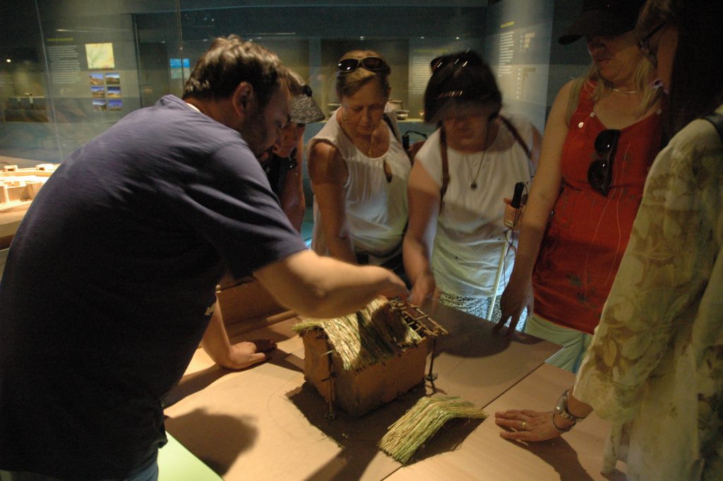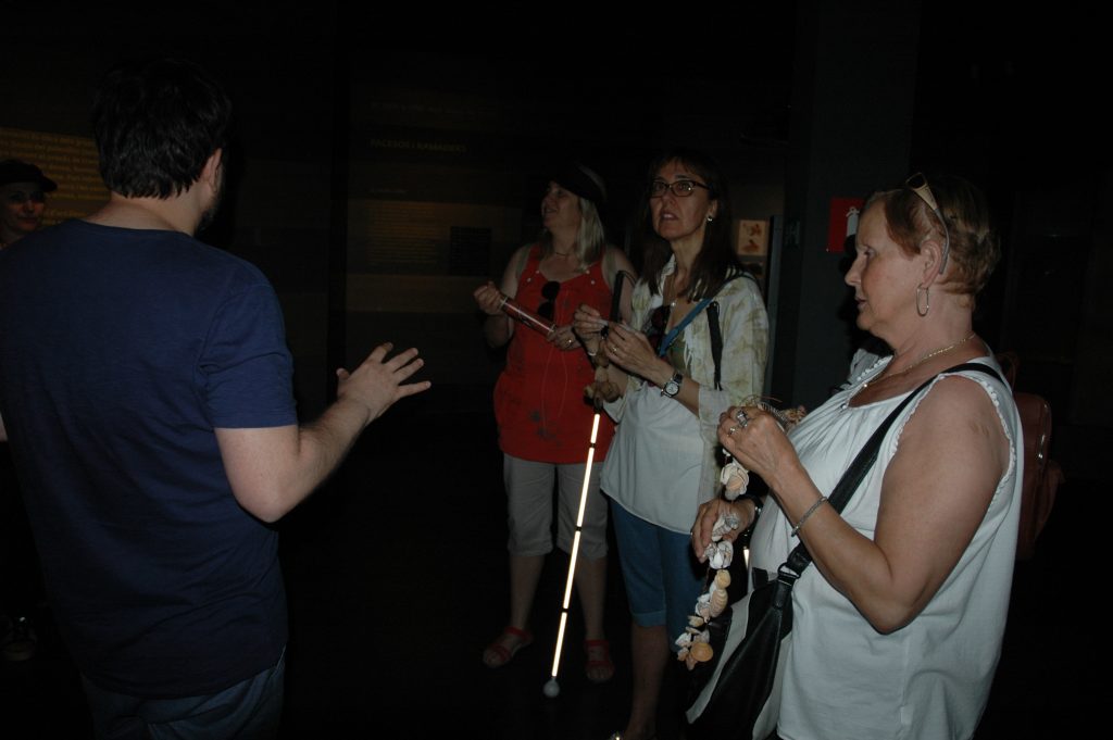 Durant la visita les participants van poder interactuar amb diferents materials adaptats a persones amb necessitats educatives especials, maquetes, reproducccions d’imatges, arxius de so, etc. També van poder tocar diferents obres d’art seleccionades per les conservadores del Museu.