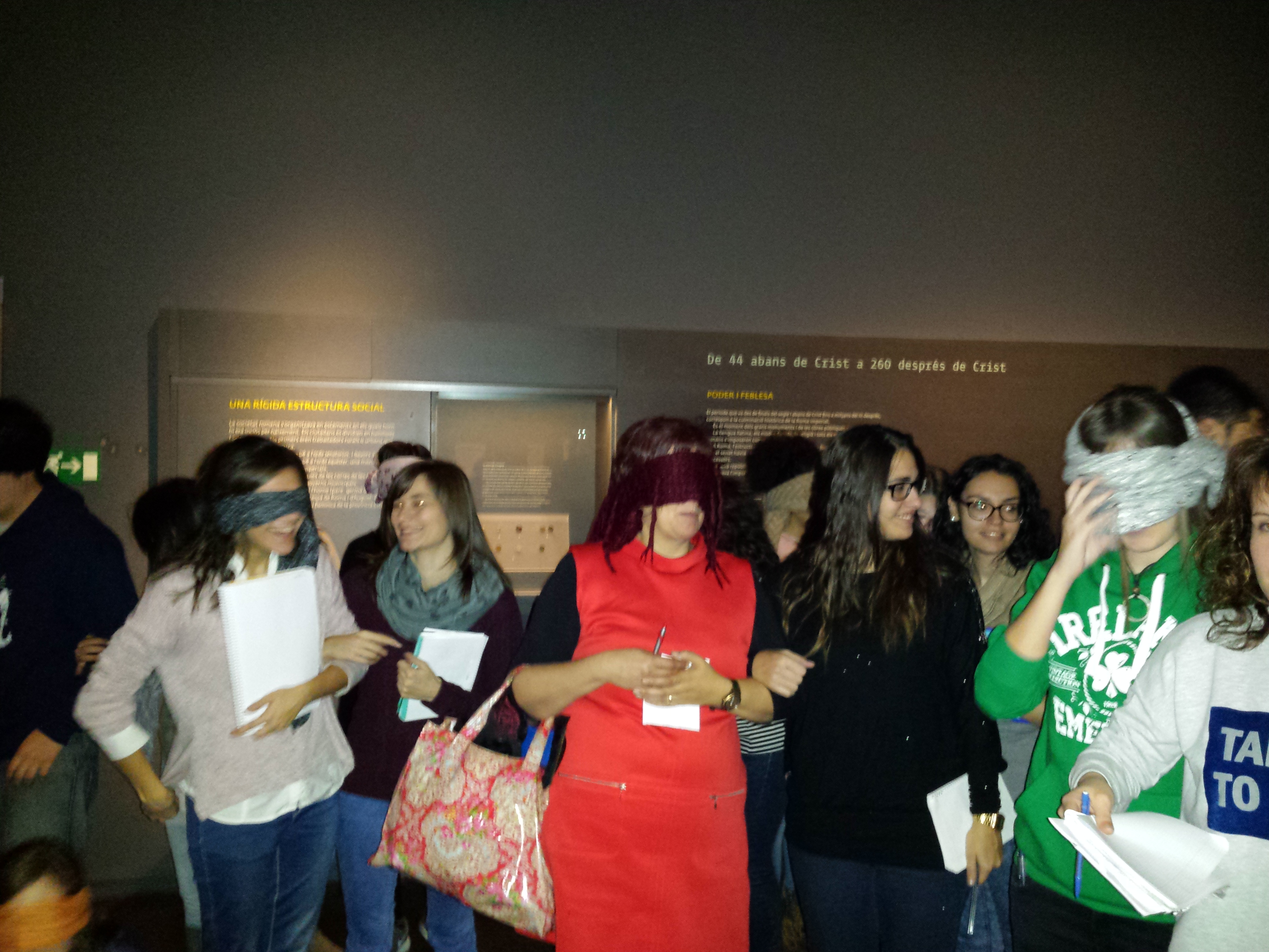Abans de portar-la a terme els alumnes va realitzar dues sessions prèvies amb els educadors del Museu de Lleida que els va permetre escollir quines serien les obres d’art i els espais adients per dissenyar l’itinerari que van portar a terme els seus companys d’assignatura. Finalment els àmbits escollits van ser, el mosaic romà del Romeral d’Albesa (tacte), l’Àndalus i la seva ceràmica (tacte), l’absis romànic i l’exposició temporal “Apòstols del Rock” (oïda) i les pintures de la Pía Almoina (el gust). L’objectiu era que estudiants amb els ulls tancats amb un acompanyat realitzessin un itinerari a cegues per poder descobrir les obres d’art a través dels sentits que habitualment no s’utilitzen en un museu d’art.