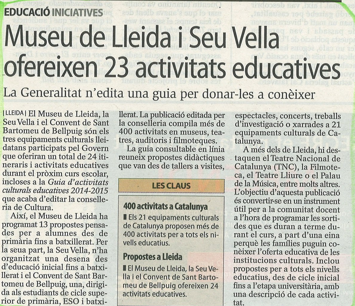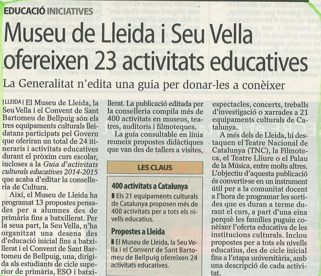 El Museu de Lleida present a la Guia d’activitats educatives del Departament de Cultura
