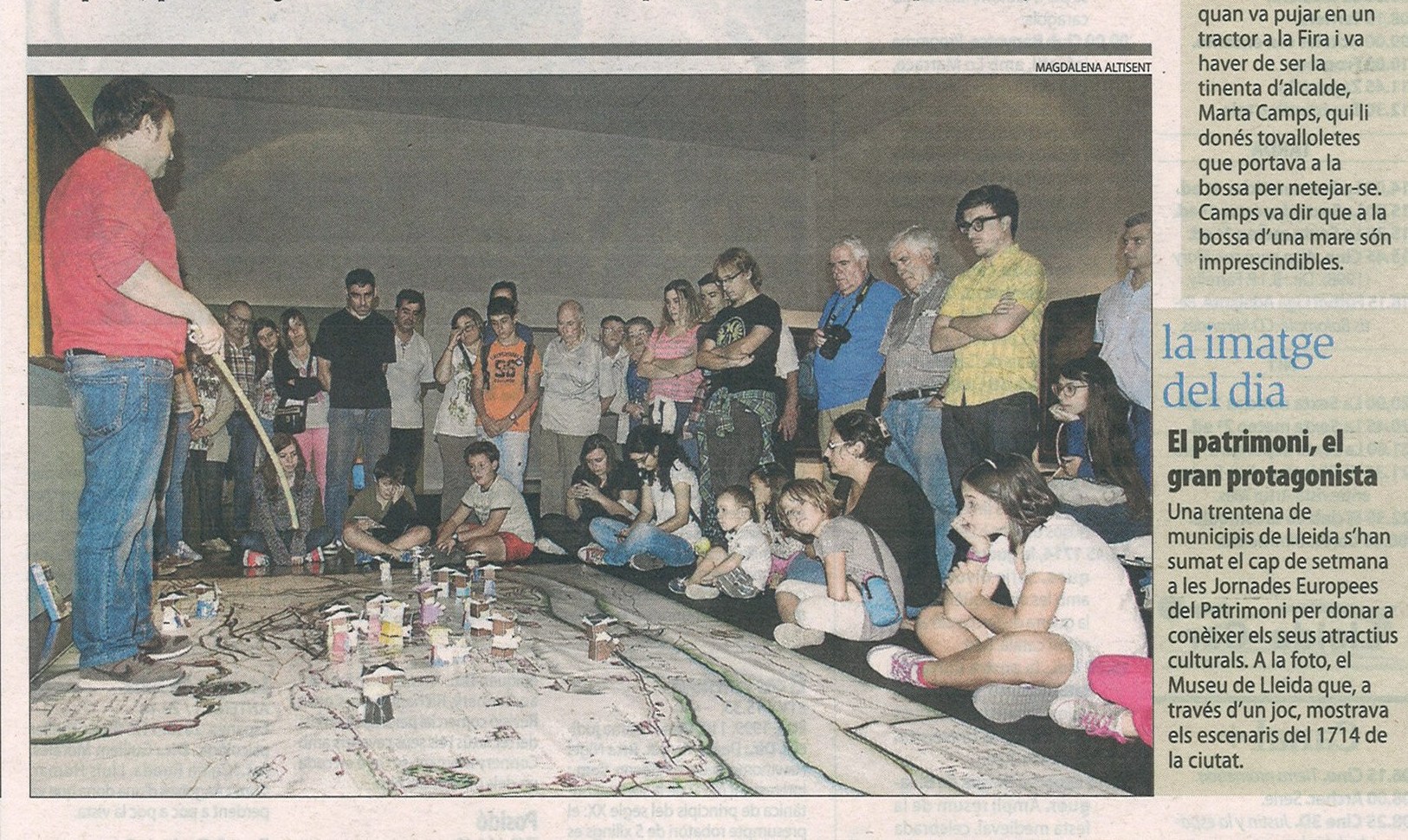 Una imatge de l’activitat programada pel Museu de Lleida a les Jornades Europees del Patrimoni (2014), va ser escollida pel diari Segre per a la seva imatge destacada d’aquell dia. Una activitat familiar que va ser seguida durant tres hores i que va tenir una gran acceptació.